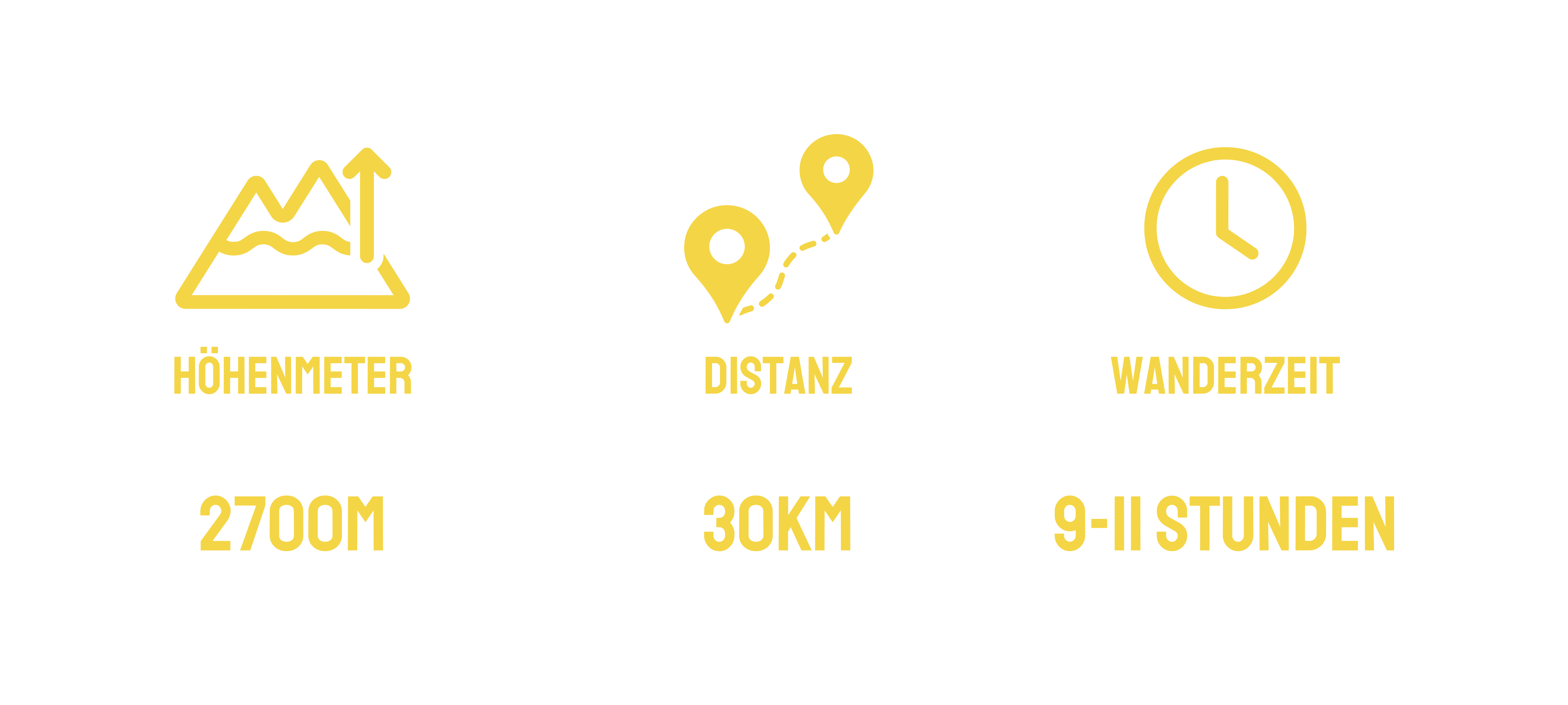 Das Wichtigste auf unserer Wanderung: Der Genuss und das Erlebnis sind bei uns das Wichtigste. Die Wanderung ist kein Wettbewerb und es gibt keine Zeitmessung. Die Strecke ist anspruchsvoll und soll deshalb auch nicht in Rekordzeit bewältigt werden.